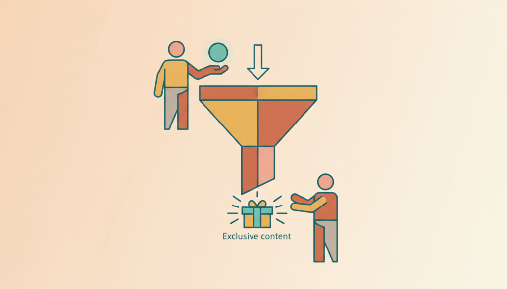 ILUSTRAÇÃO DE UM FUNIL DE MARKETING DEMONSTRANDO A TROCA DE VALOR POR DADOS DO USUÁRIO
